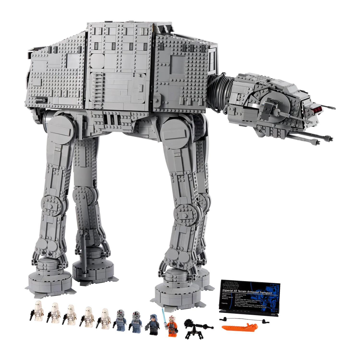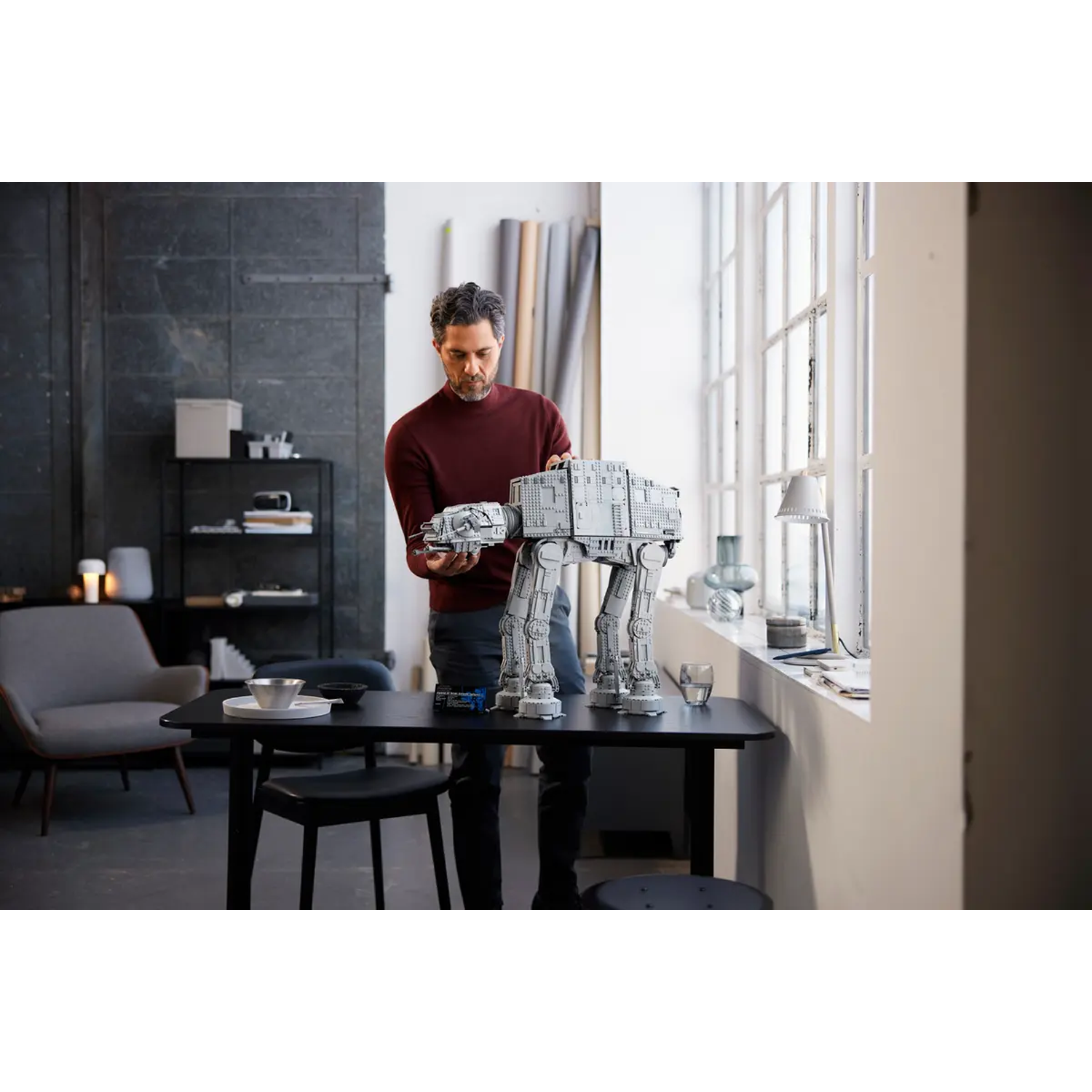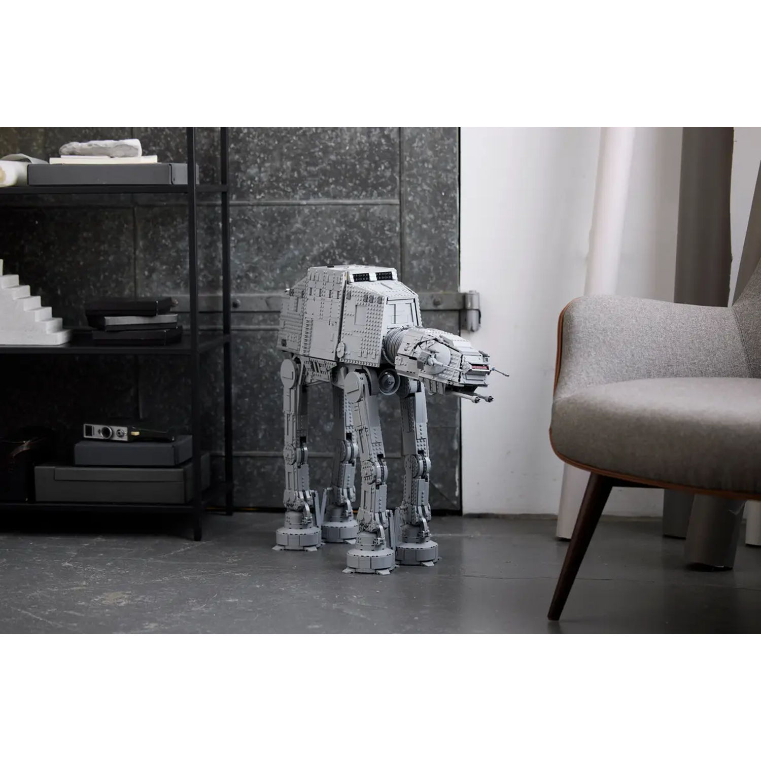 De AT-AT is ca. 62 cm hoog. De gedetailleerde romp kan open en biedt plaats aan maar liefst 40 LEGO minifiguren (bij deze set zijn er 9 inbegrepen, waaronder generaal Veers en Luke Skywalker), 4 speederbikes (2 inbegrepen) en de E-Web zware snelvuurblaster. In de kop passen 2 LEGO minifiguren en er is plek voor een derde. Met het informatieplaatje maak je dit indrukwekkende model helemaal af.