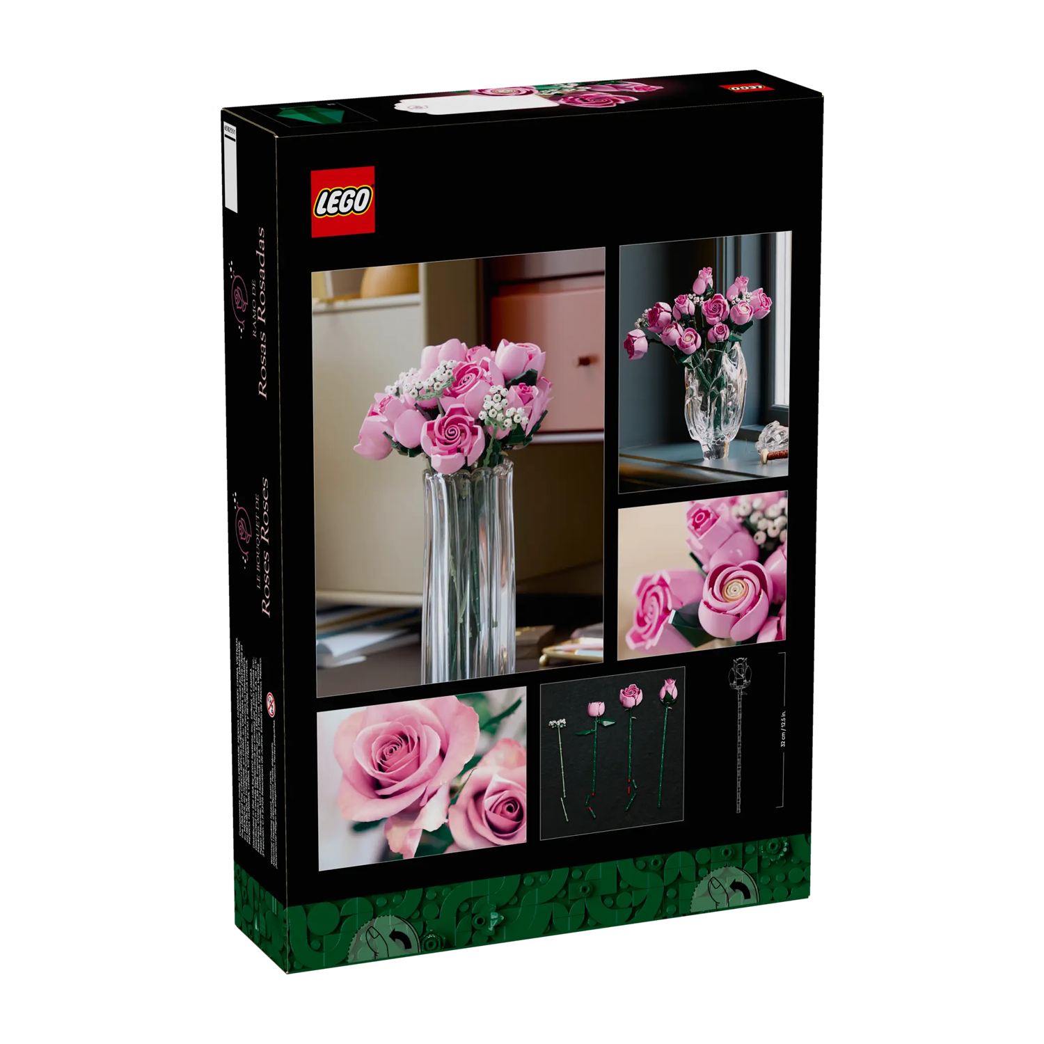 - LEGO® bloemen – de set bevat 4 rozen in volle bloei, 4 rozenbloesems en 4 rozenknoppen, plus 4 takjes gipskruid met witte bloemetjes