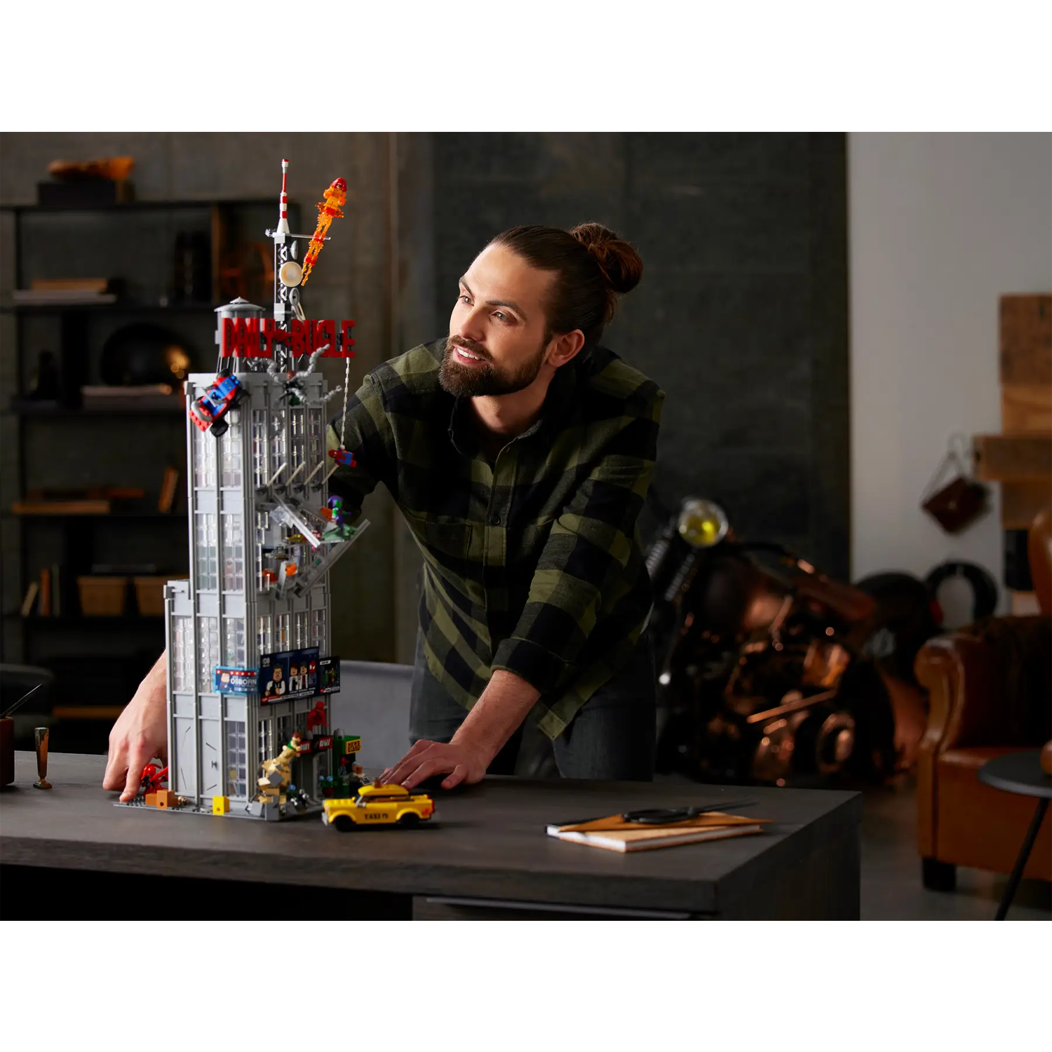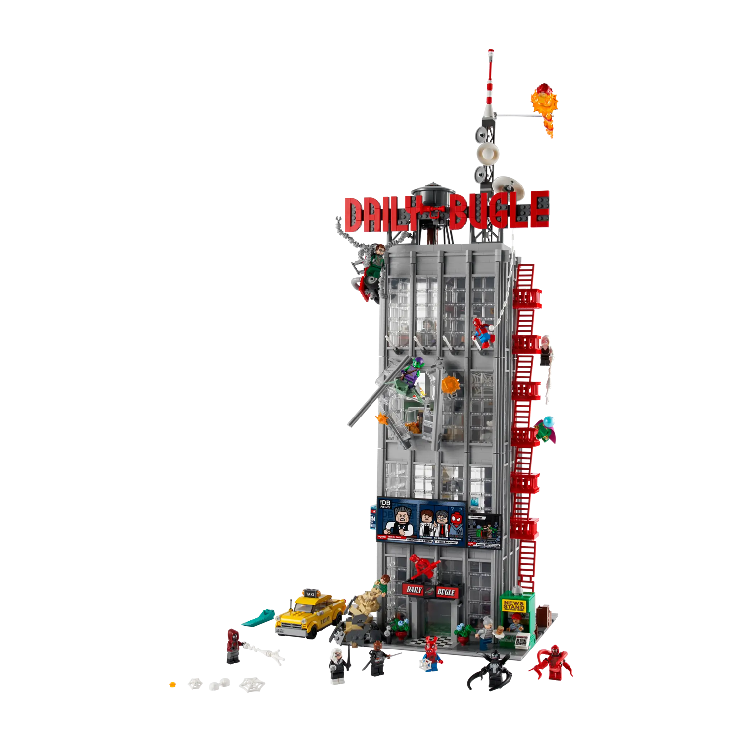 Met een hoogte van ca. 82 cm vormt deze 3789-delige versie van het hoofdkantoor van de Daily Bugle de torenhoge achtergrond voor een sterrencast van Marvel helden en schurken, waarvan er veel voor het eerst in een LEGO set te vinden zijn! Het gebouw bevat talloze authentieke details, fascinerende functies en klassieke stripheldenactie – van de gele taxi uit New York tot het penthousekantoor van de hoofdredacteur van de Daily Bugle. Marvel fans zullen helemaal opgaan in dit uitdagende bouwproject. Als het af is, kan iedereen de afneembare verdiepingen, daken en gevels bewonderen.