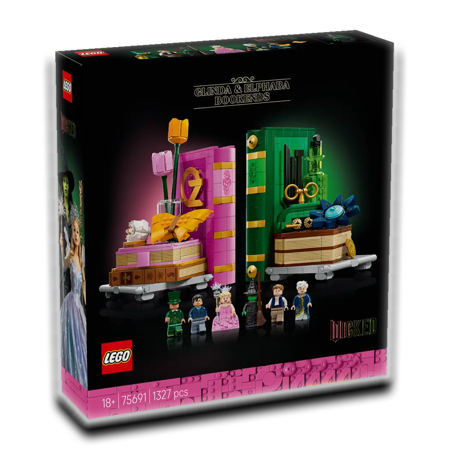 Met deze Glinda en Elphaba boekensteunen (75691) word je elke keer dat je een boek pakt naar de wereld van Wicked getransporteerd. Volwassen fans van de films beginnen aan een magisch avontuur en bouwen decoratieve LEGO® boekensteunen met deze Wicked merchandise bouwset.