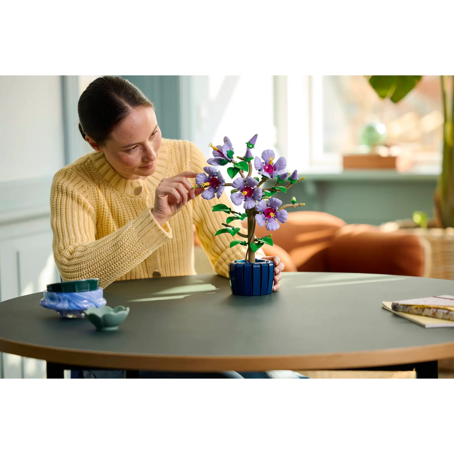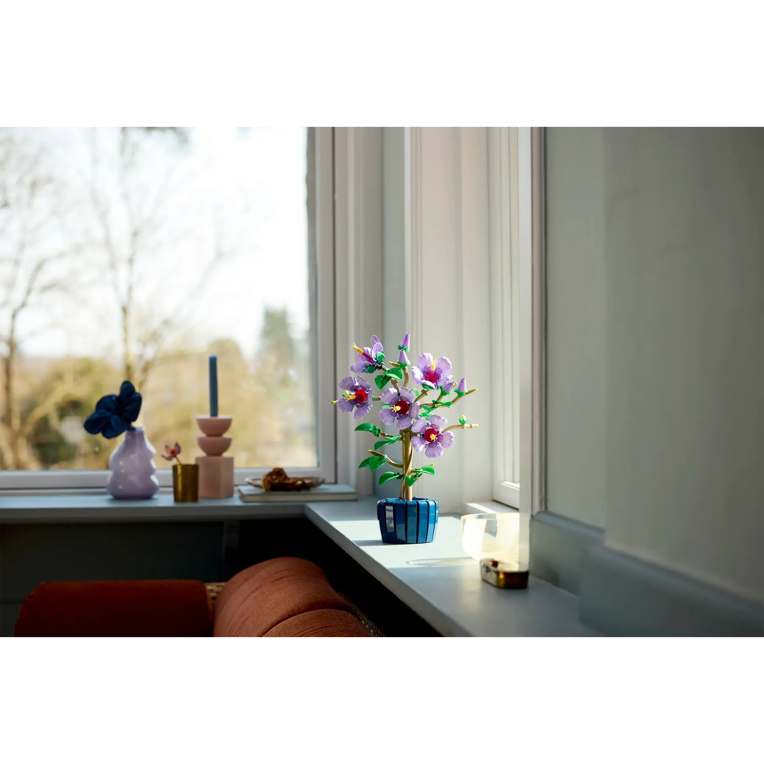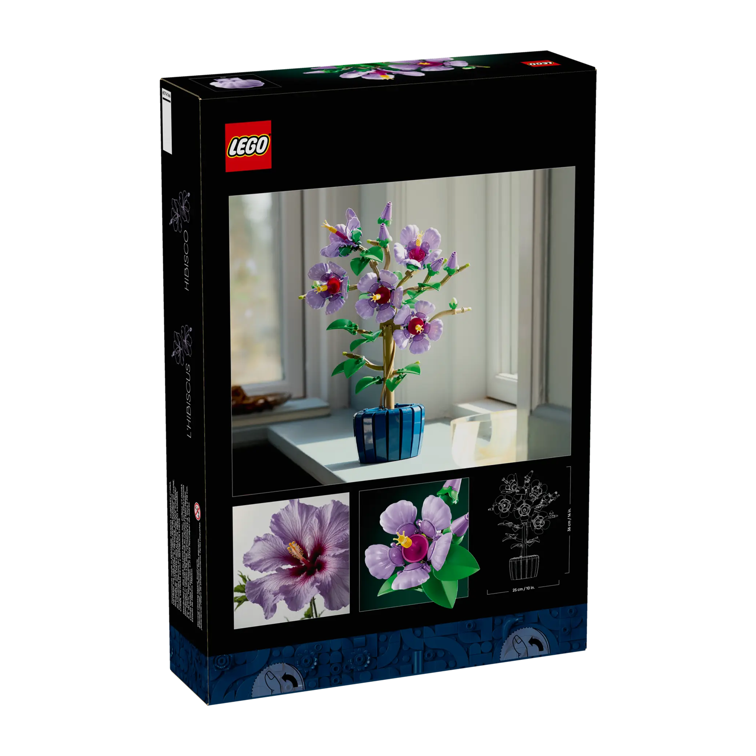 - LEGO® decoratie – de bouwbare plantwordt geleverd met een donkerblauwe pot, zodat je je hibiscus trots kunt neerzetten na het bouwen