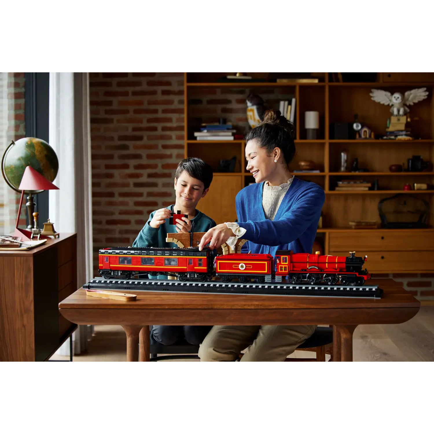 De locomotief heeft een gedetailleerde onderkant en een hendel bovenop waarmee de trein heen en weer schommelt als een echte stoomtrein. In de tender zit steenkool voor de locomotief. De passagierswagon bestaat uit 3 coupés met elk een klassieke scène: toen Harry, Ron en Hermelien elkaar ontmoetten in de eerste film, toen professor Lupos Harry redde van de Dementor™ in de derde film en toen Loena Harry hielp na Draco's spreuk in de zesde film. Het model bevat ook een gedeelte van Perron 9¾, waar de volwassen Harry en Ginny staan te wachten met hun kinderen Lily, James en Albus, klaar voor Albus' eerste reis met de geweldige trein.