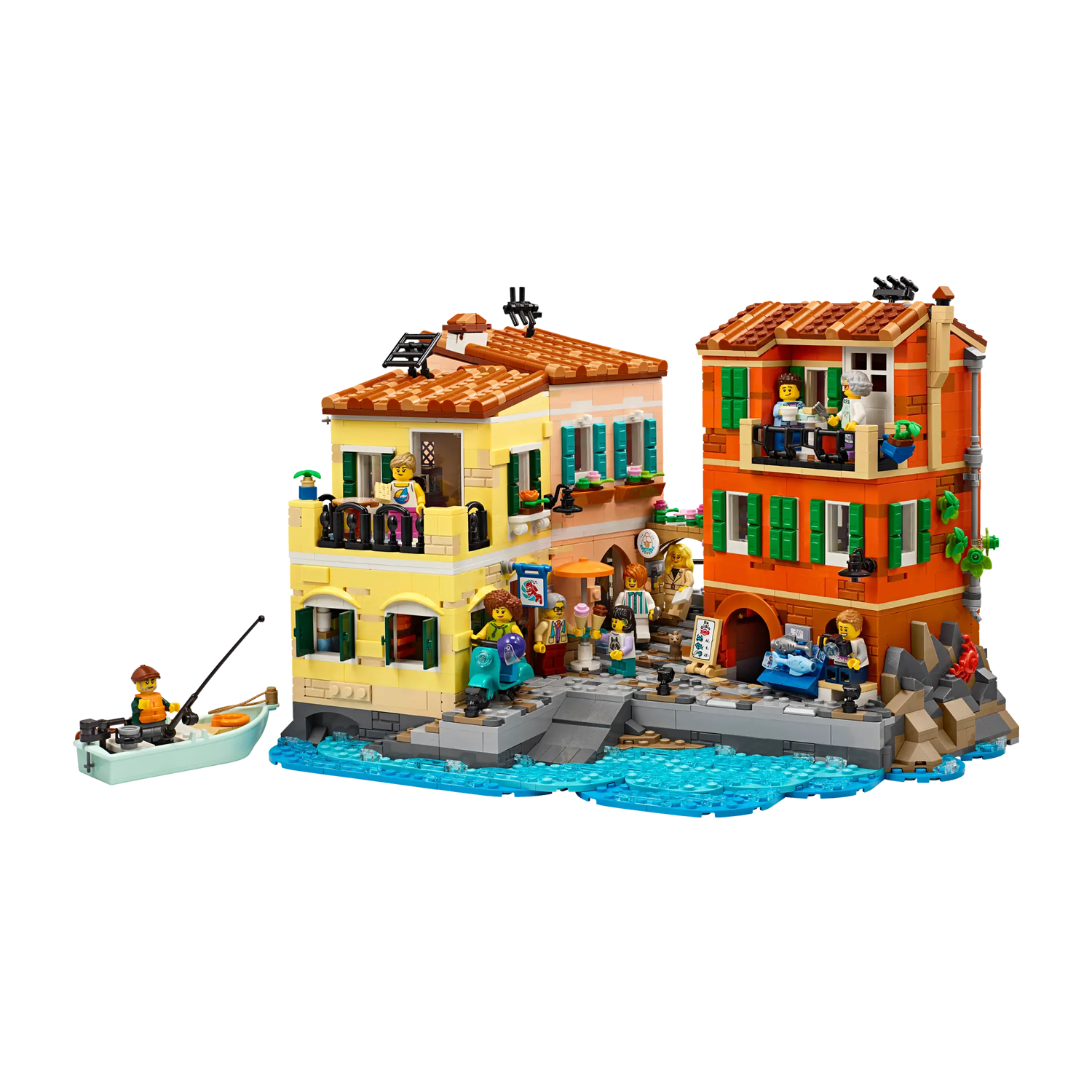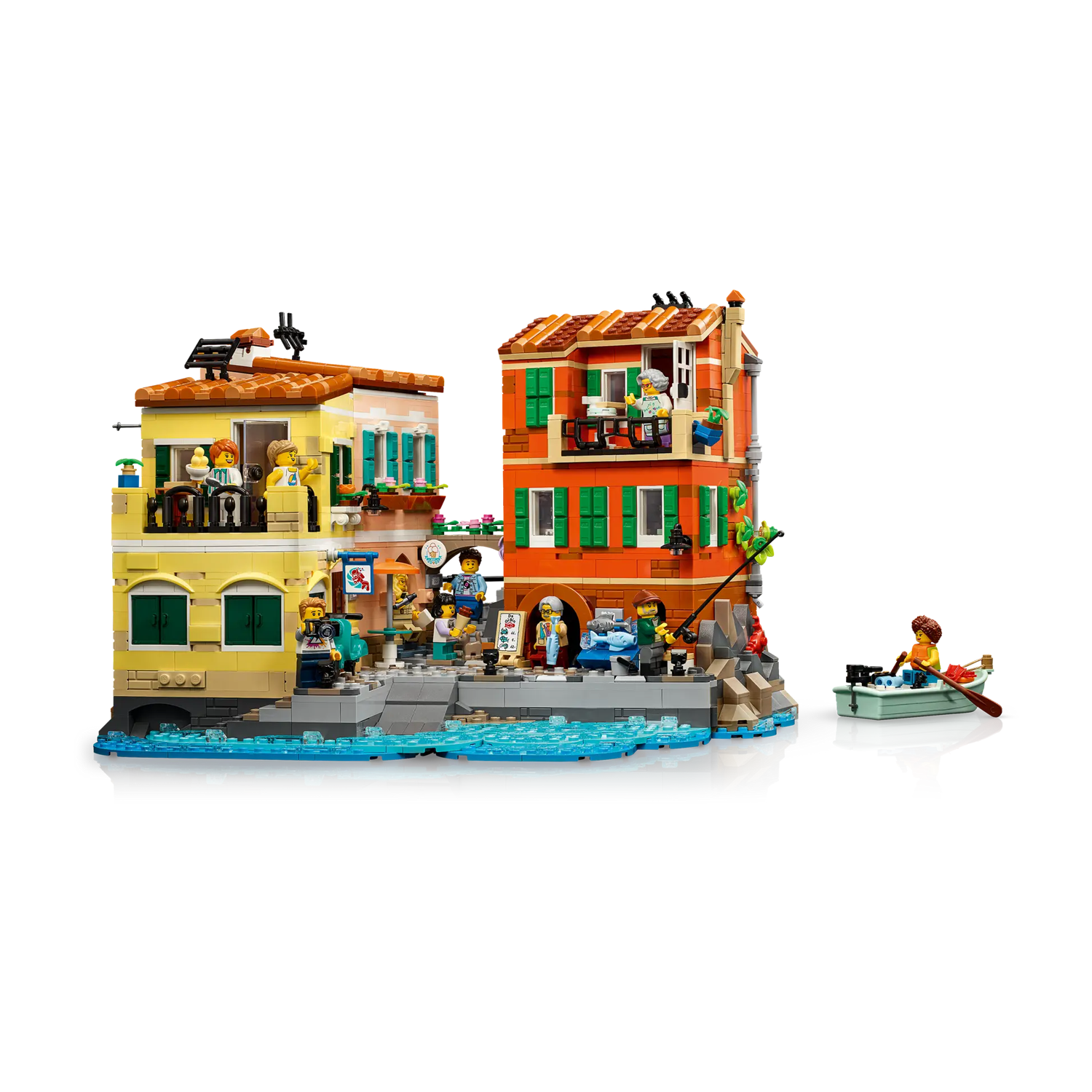 - 10 LEGO® minifiguren – breng de scène tot leven met 10 minifiguren, waaronder een visverkoper, de eigenaar van een Italiaanse ijswinkel, een toerist (de fan die de set heeft bedacht!) en een scooterrijder, plus 2 kittenfiguren