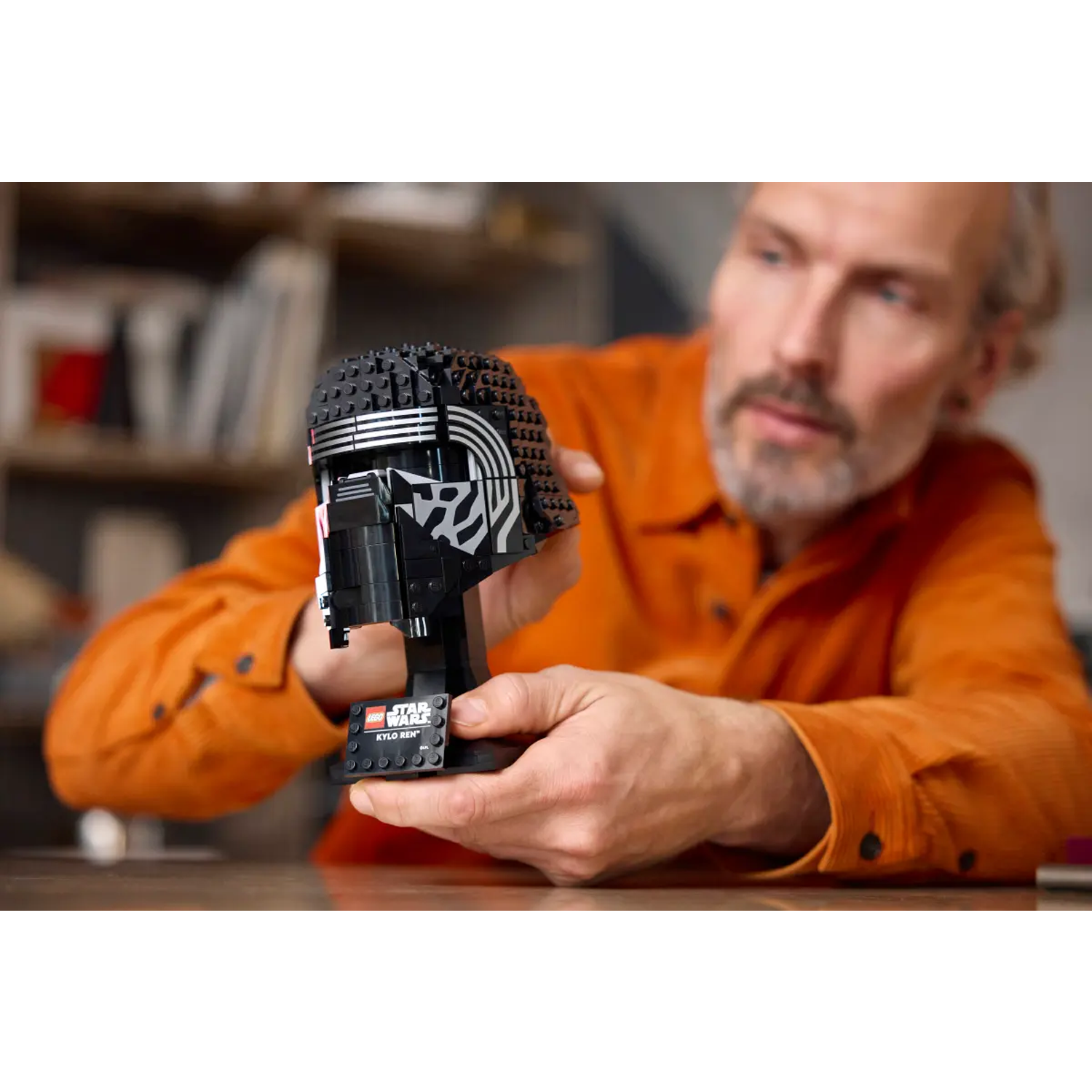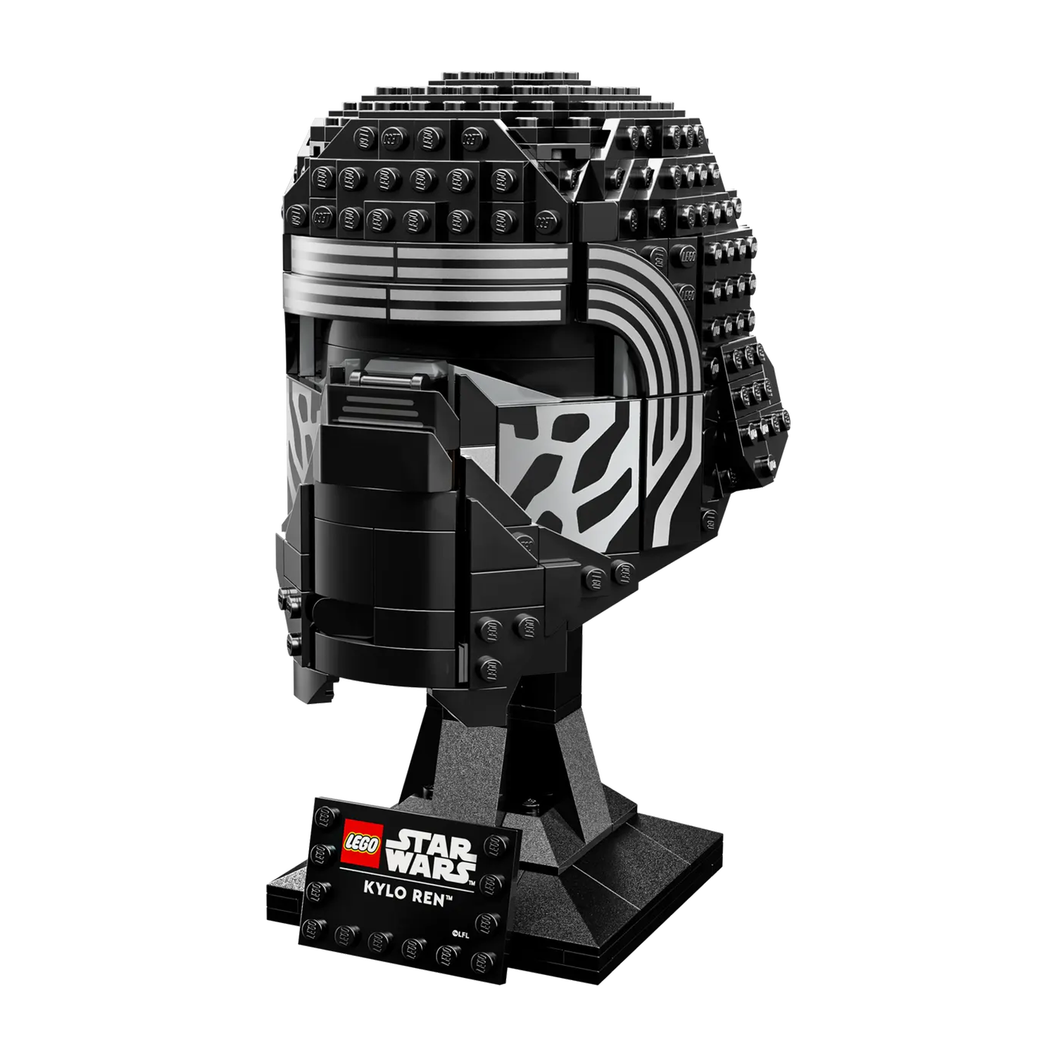 - Creëer een Star Wars™ display – bouw de direct herkenbare kenmerken van Kylo Rens bekende helm na in LEGO® stijl en zet je creatie neer op de bouwbare standaard met naamplaatje