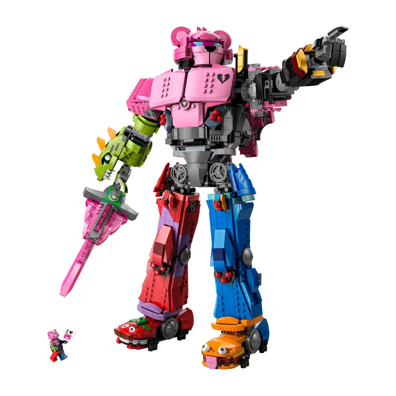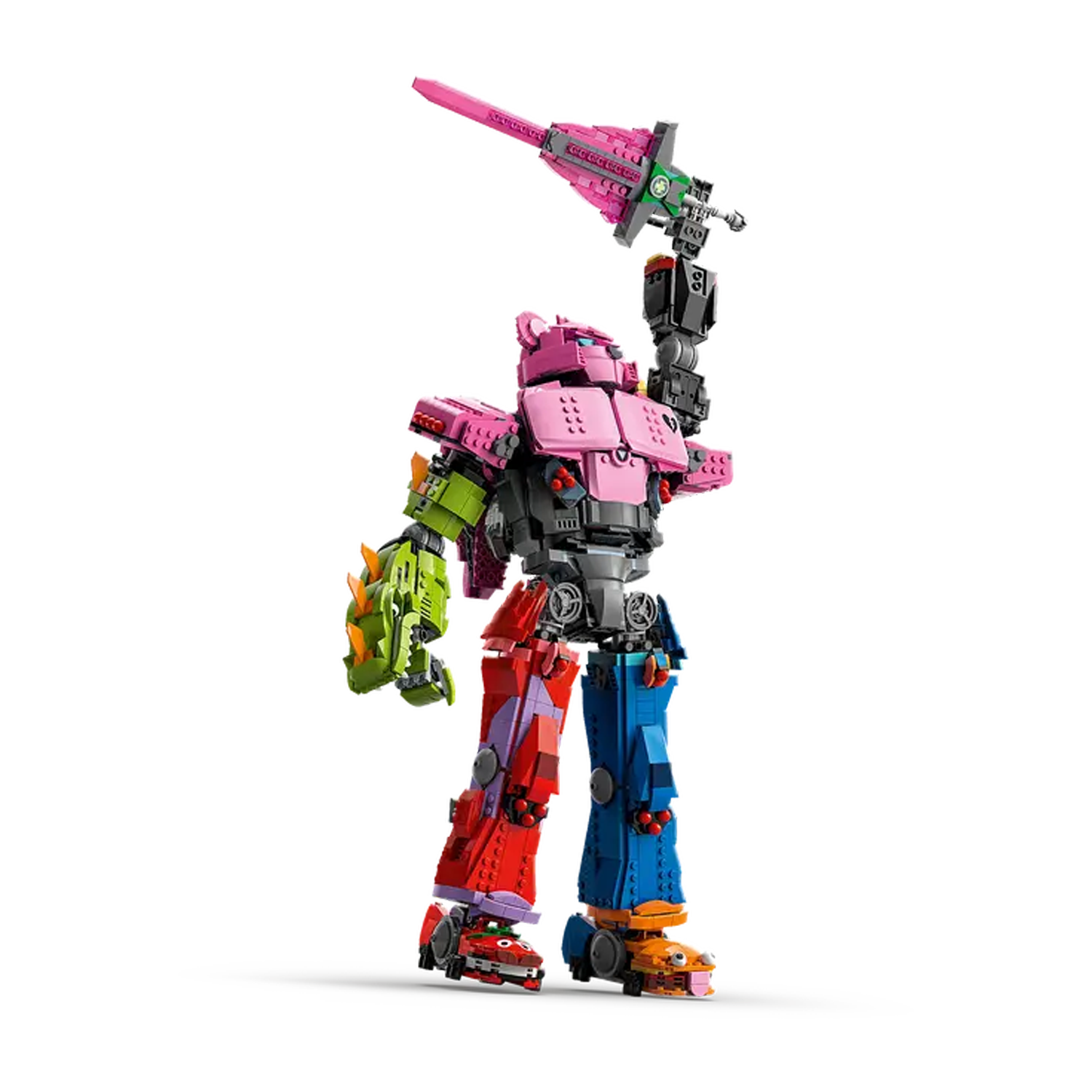 Geniet van een boeiend bouwproject waarin je de mechafiguur uit de videogame nabouwt, die is gebaseerd op het opvallende robotpersonage dat het eiland redde in Fortnite Battle Royale Chapter 1. Het model kan met de heupen, armen, voeten en hoofd in verschillende houdingen worden neergezet en wordt geleverd met een zwaard. Er is ook een minifiguur gebaseerd op hetzelfde personage dat in de cockpit in de borstkas van de figuur kan worden geplaatst.