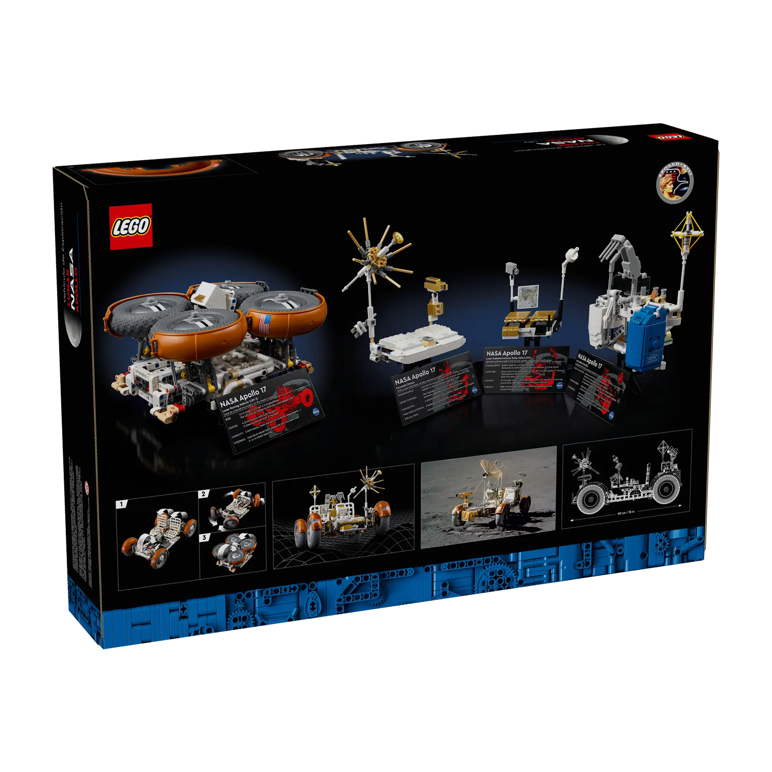 Ga op reis naar de maan met deze gedetailleerde LEGO® Technic NASA modelset (42182) voor volwassenen. De set bevat een displaymodel van de maanrover die door Apollo 17 werd vervoerd, plus 3 soorten apparatuur om aan de rover te bevestigen.