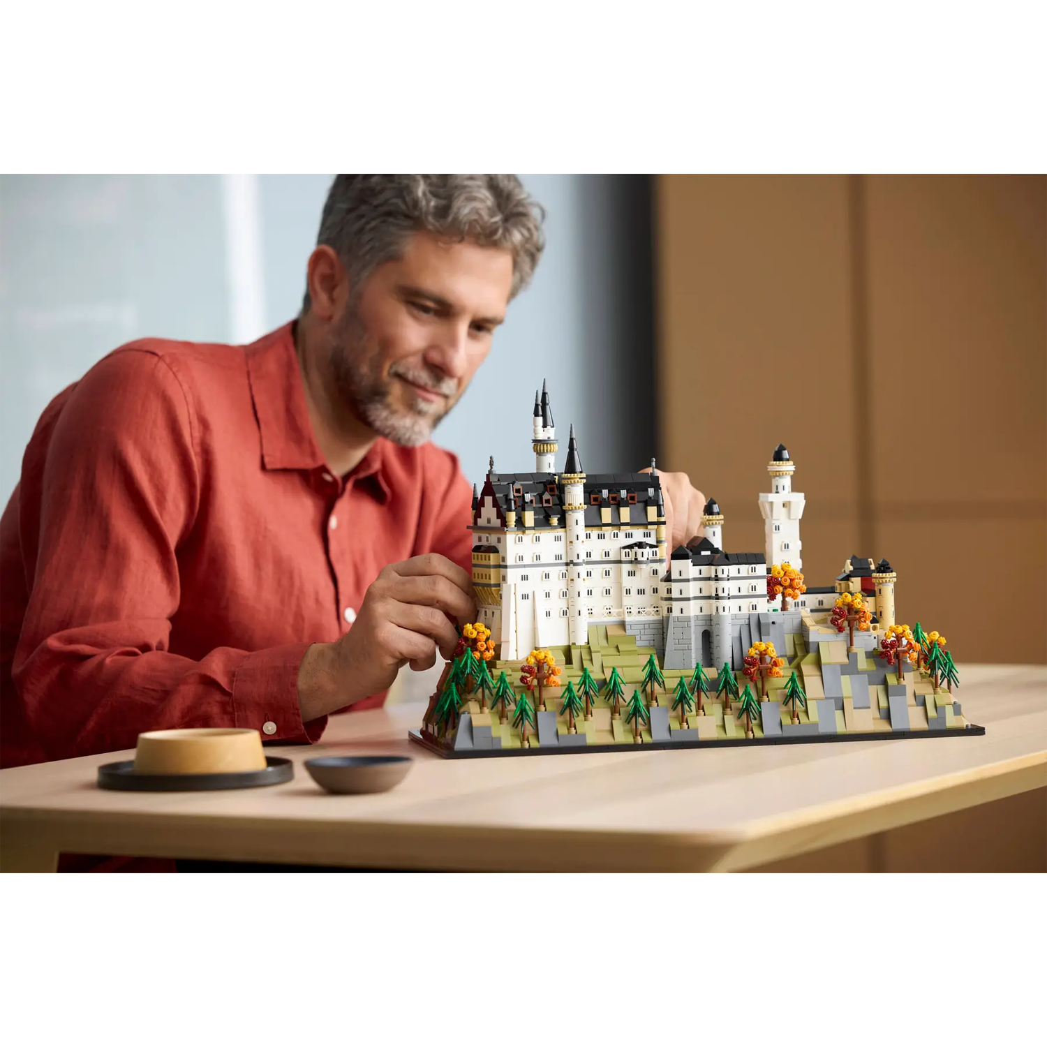 - Ontspannende activiteit voor volwassenen – bepaal of het zomer of herfst is met de bomen, bevestig het naamplaatje op de basis aan de voorkant van het LEGO® kasteel en zet je model neer op een plek waar iedereen het kan bewonderen