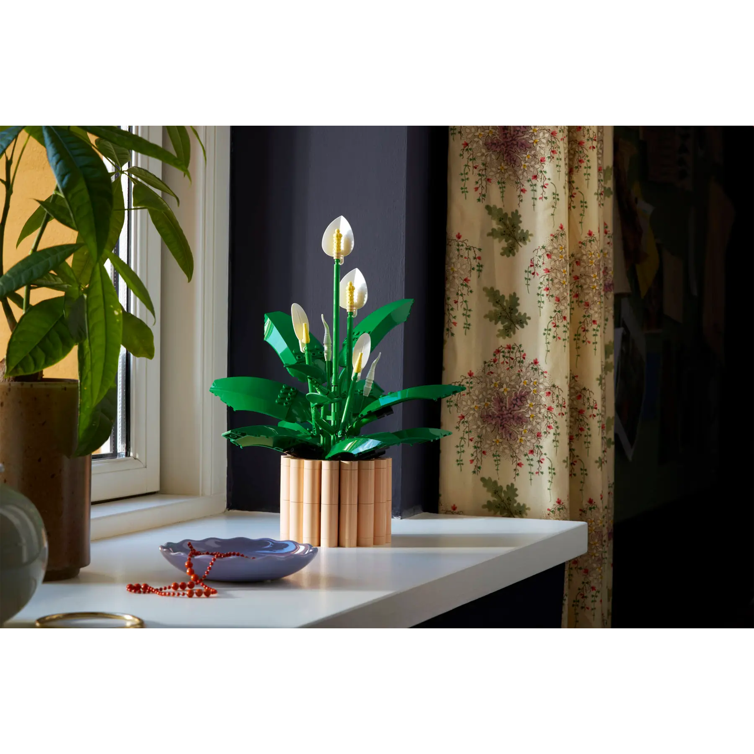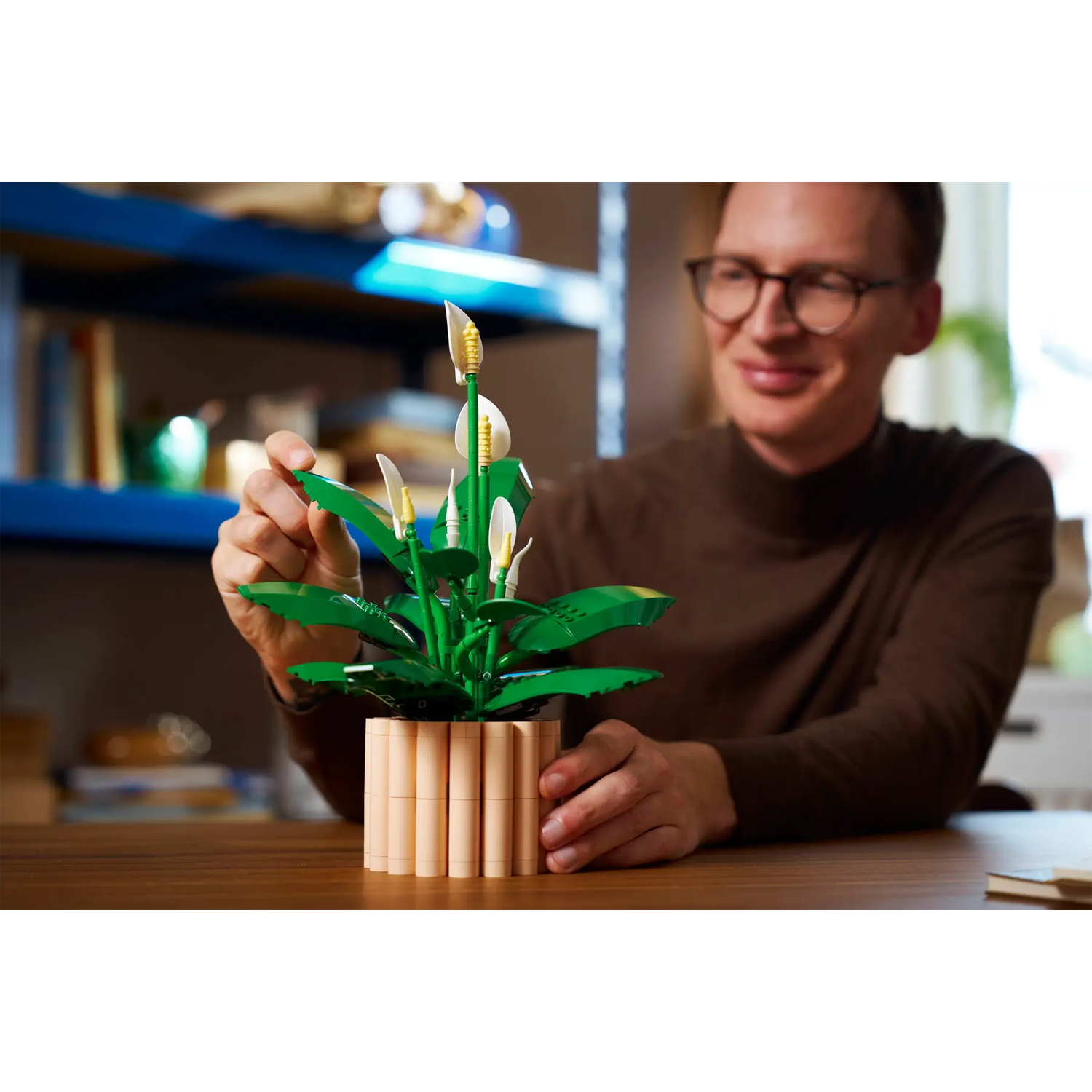 - LEGO® BLOEMEN – creëer een vredeslelie met bloemen in 3 groeistadia: er zijn 2 ontkiemende knoppen, 2 gedeeltelijk geopende bloemen en 2 bloemen in volle bloei