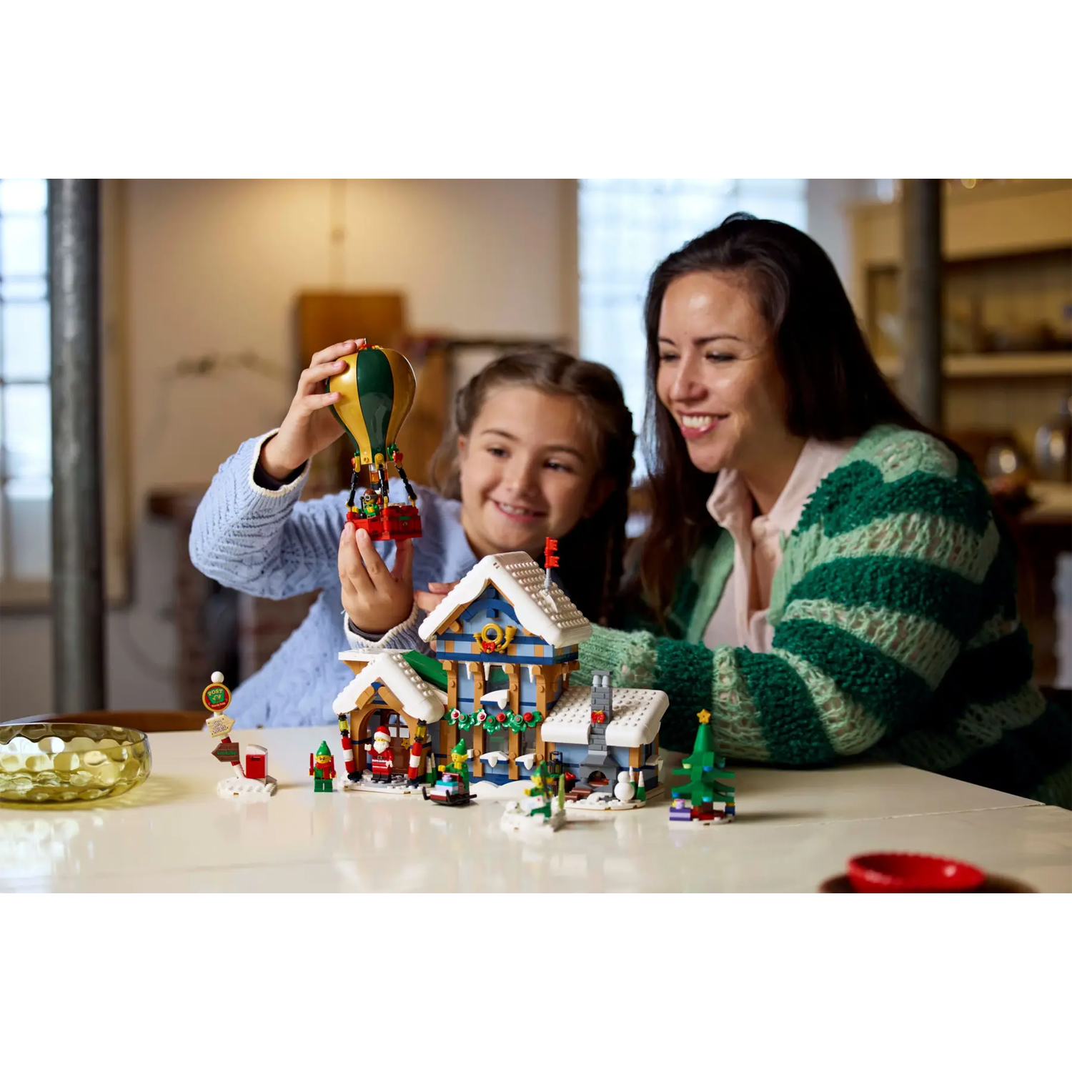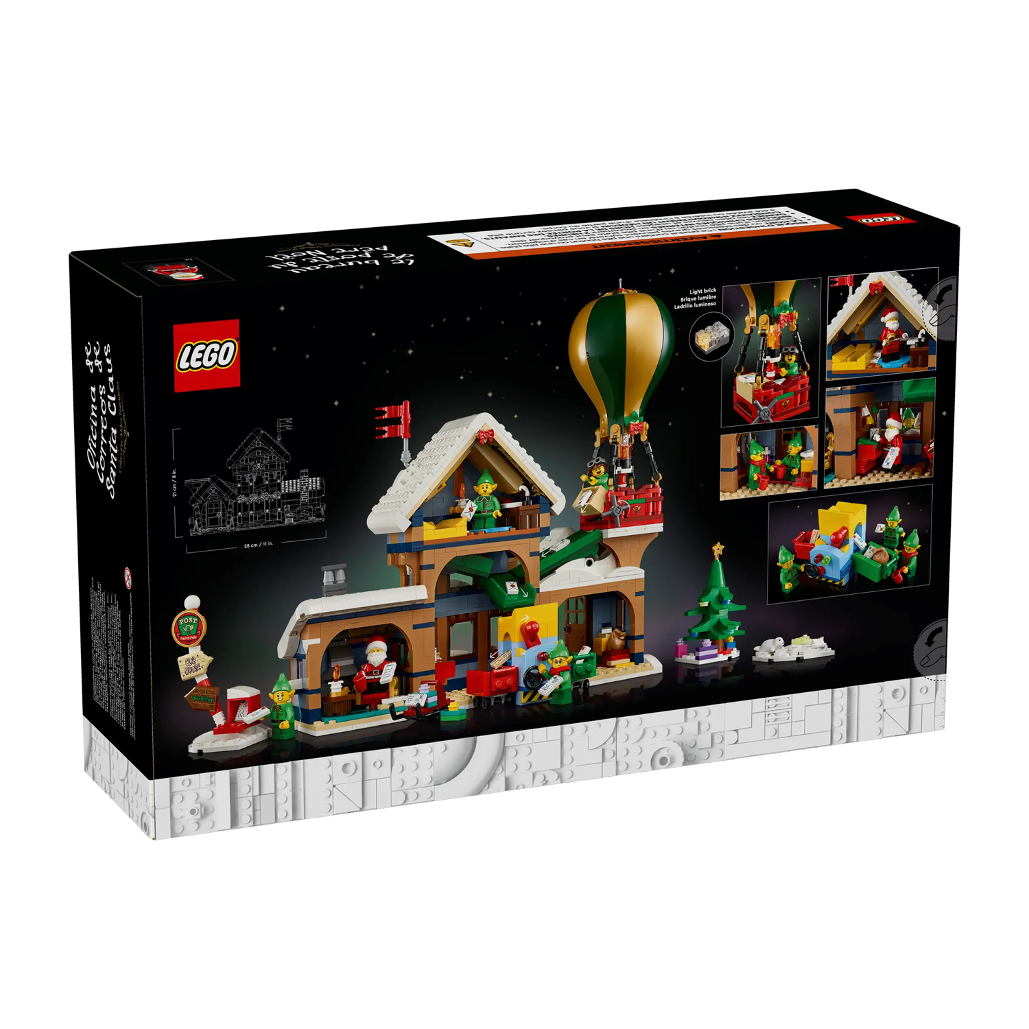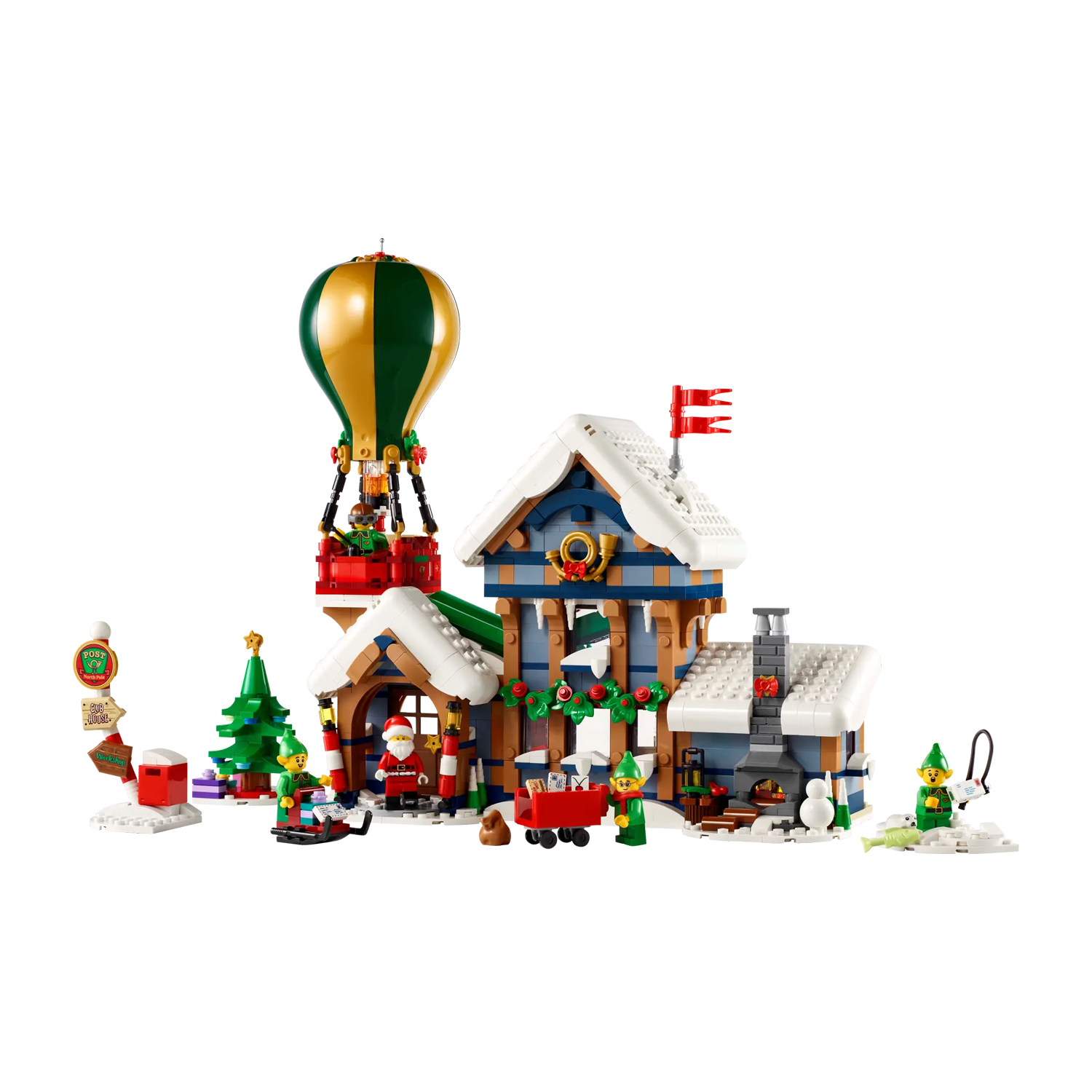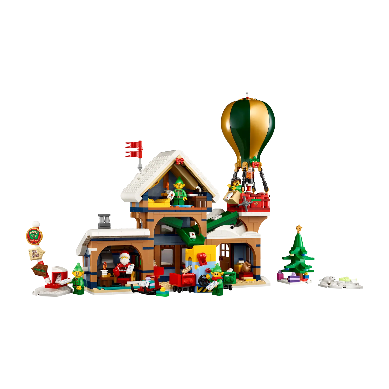 Het besneeuwde postkantoor herbergt de studeerkamer van de Kerstman, compleet met een knus haardvuur, sorteerruimte, hal met een koffiezetapparaat en schrijfruimte met een brievenkoker op de eerste verdieping. Er is ook een heteluchtballon met een lichtgevende brander, een brievensorteerder, een ijsvisscène, een kerstboom, een wegwijzer, een brievenbus en een slee, plus een minifiguur van de Kerstman en 4 elfenfiguren.