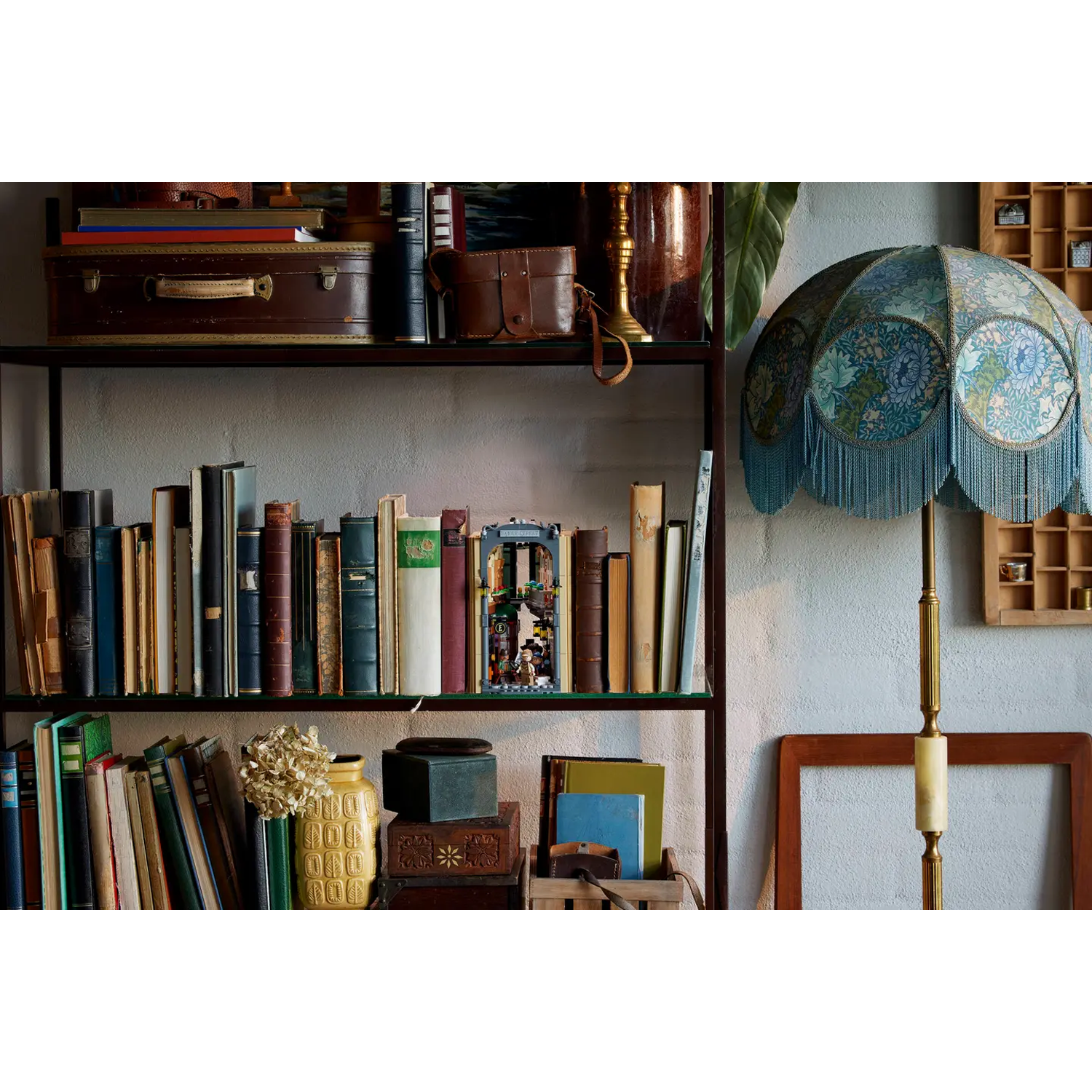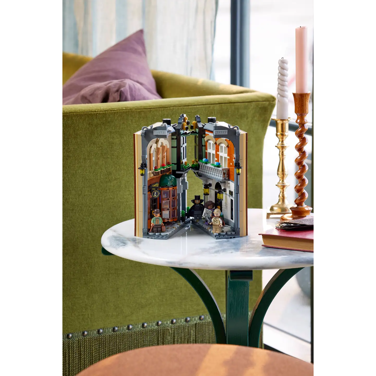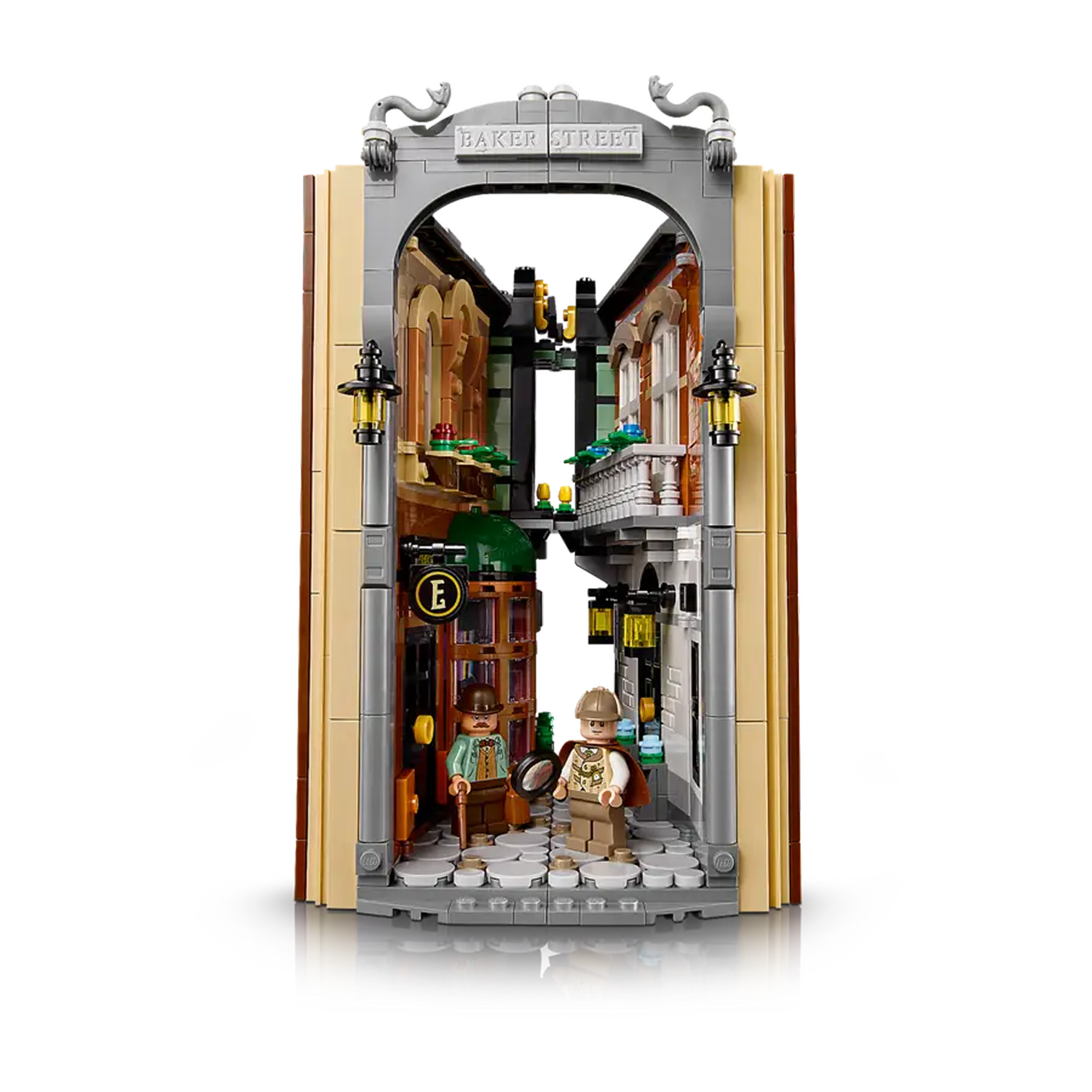 Zet de boekensteun tussen je favoriete romans voor een inkijkje in Baker Street. Open het model en ontdek een boekwinkel met een draaibare etalage, een rijtjeshuis met schuifdeur, mysteries en aanwijzingen en een gedetailleerde versie van Sherlock Holmes' appartement 221B, compleet met een open haard, bord met aanwijzingen en zijn geliefde viool.
