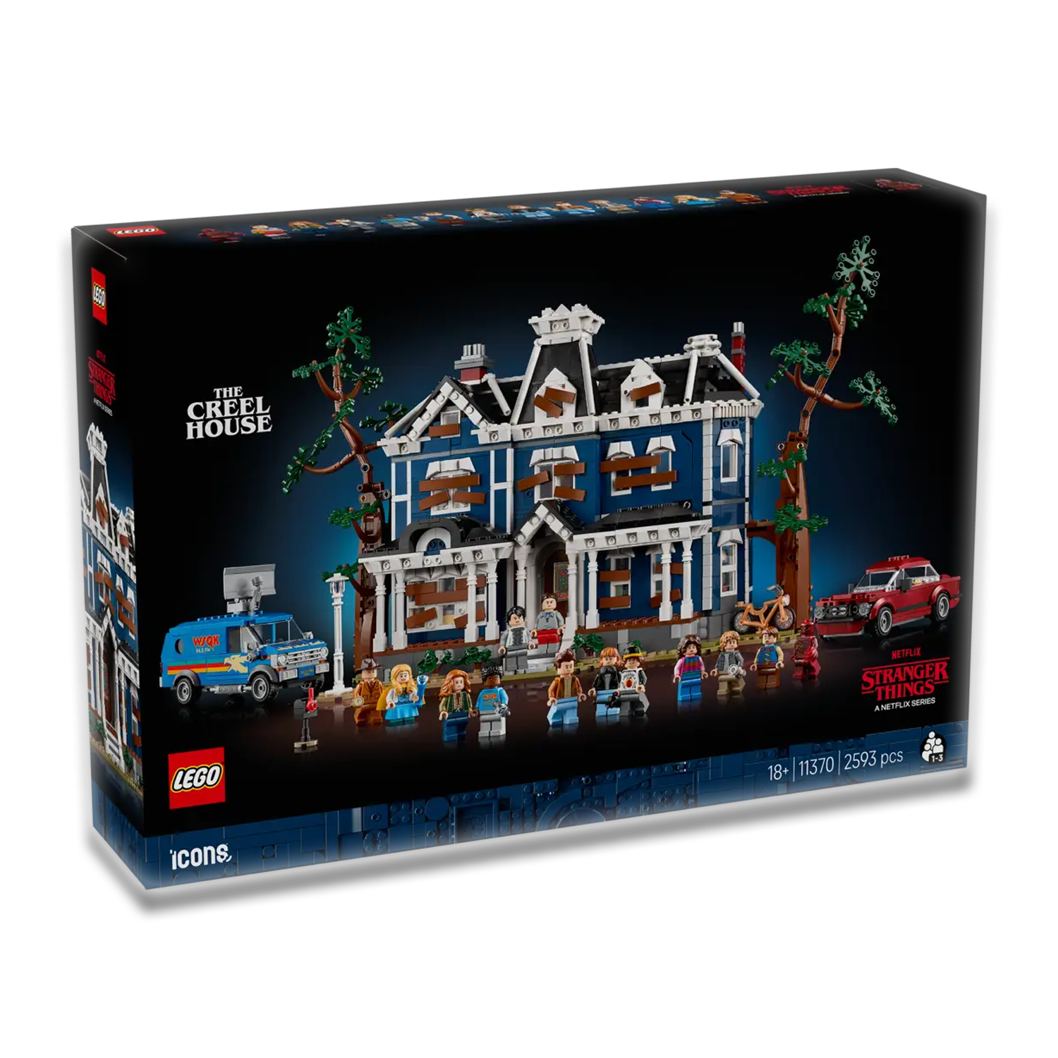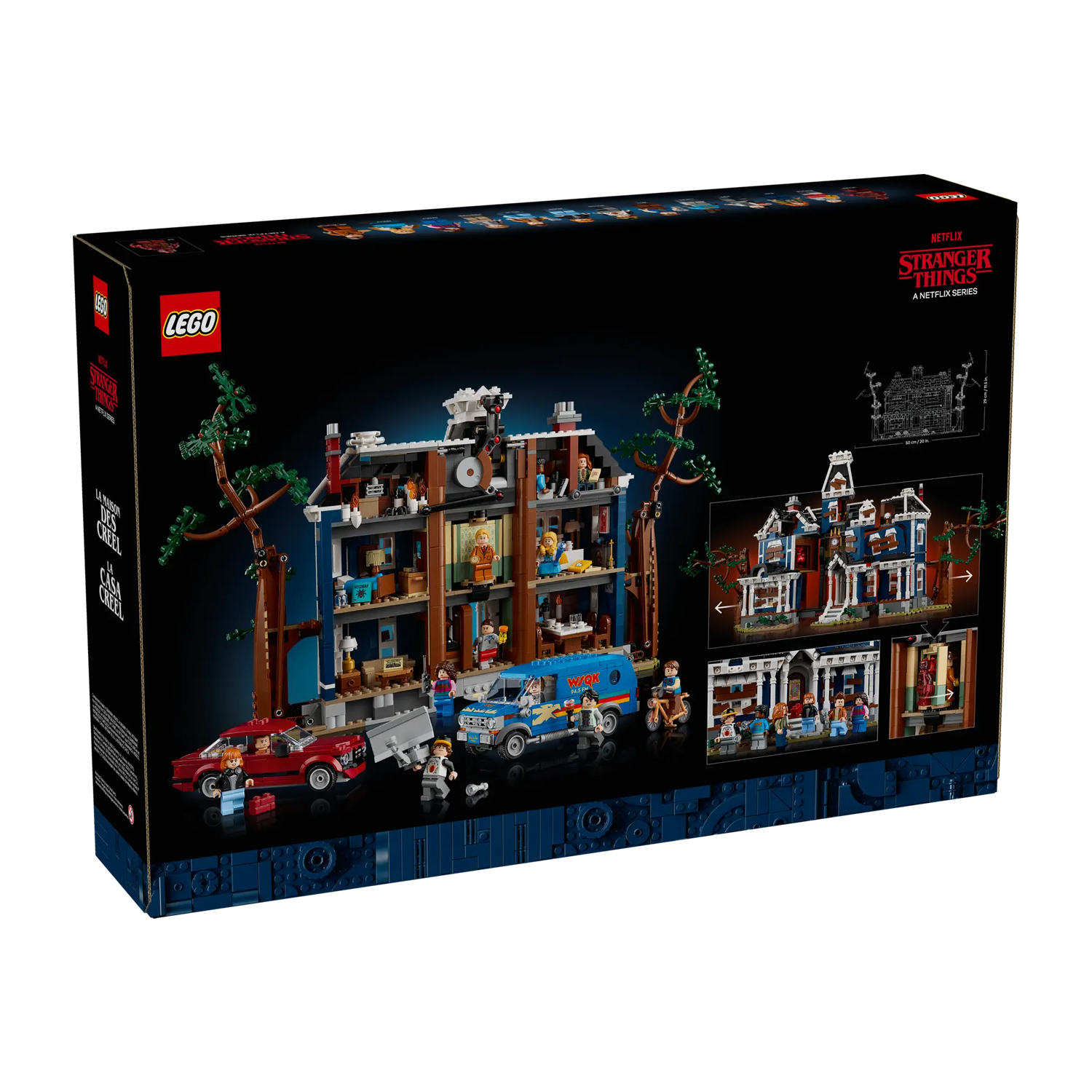- AFMETINGEN – het model in deze 2593-delige LEGO® Icons Stranger Things: Het huis van de familie Creel set is ca. 29 cm hoog, 50 cm breed en 17 cm diep