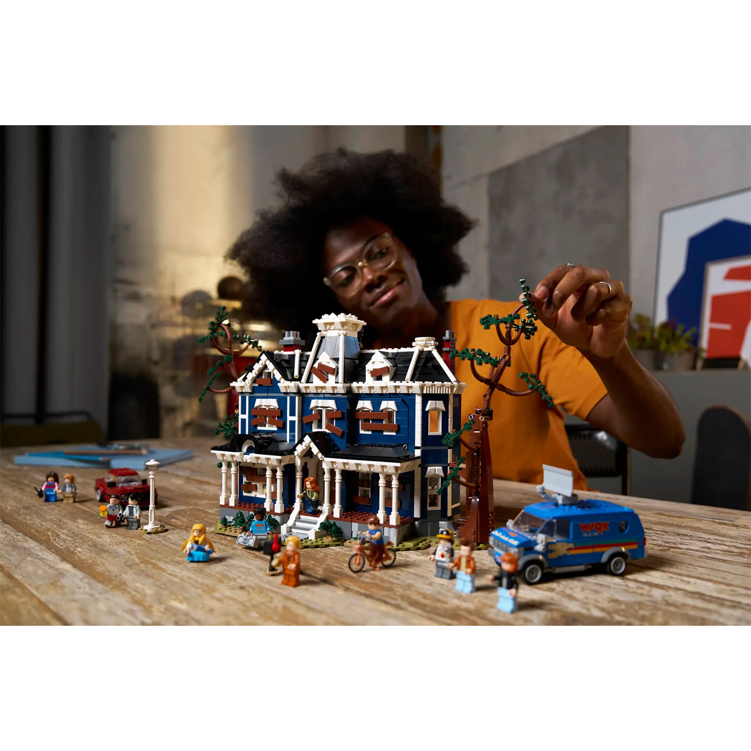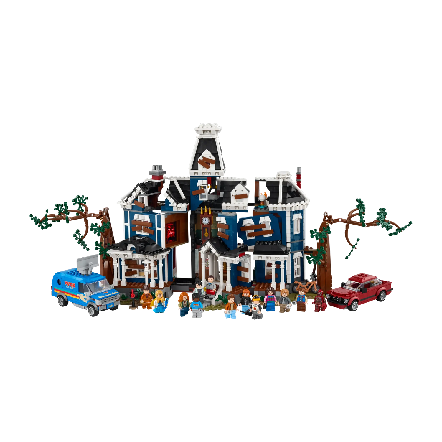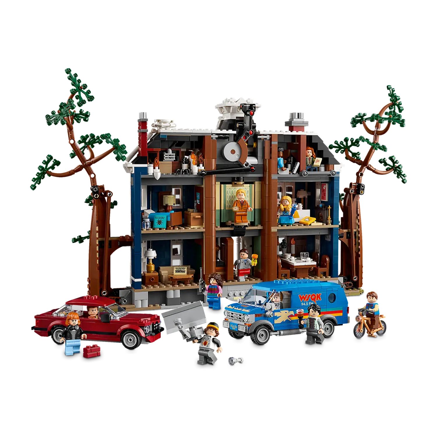 - BOUW HET OP JOUW MANIER – bouw een gedetailleerde versie van het huis van de familie Creel met of zonder planken voor de ramen, plus Steve's auto, de WSQK radiobus, Wills fiets en 13 Stranger Things personages