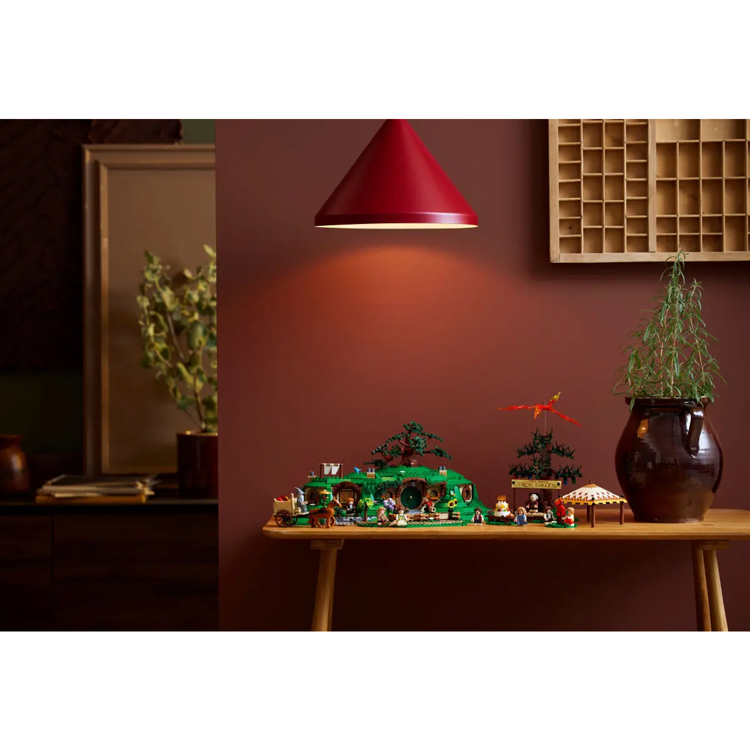 Bouw Bilbo's hobbithol in de heuvels na, compleet met een ronde deur en een prachtig ingericht interieur met een hal, studeerkamer en salon. Breng scènes tot leven met interactieve functies. Verander een brandende brief in de Ene Ring of laat Bilbo verdwijnen met een draai aan de knop. Deze set zit boordevol filmdetails, van Gandalfs paard en wagen tot de vuurwerkdraak en de Feestboom, en is een betoverend display voor thuis of op kantoor.