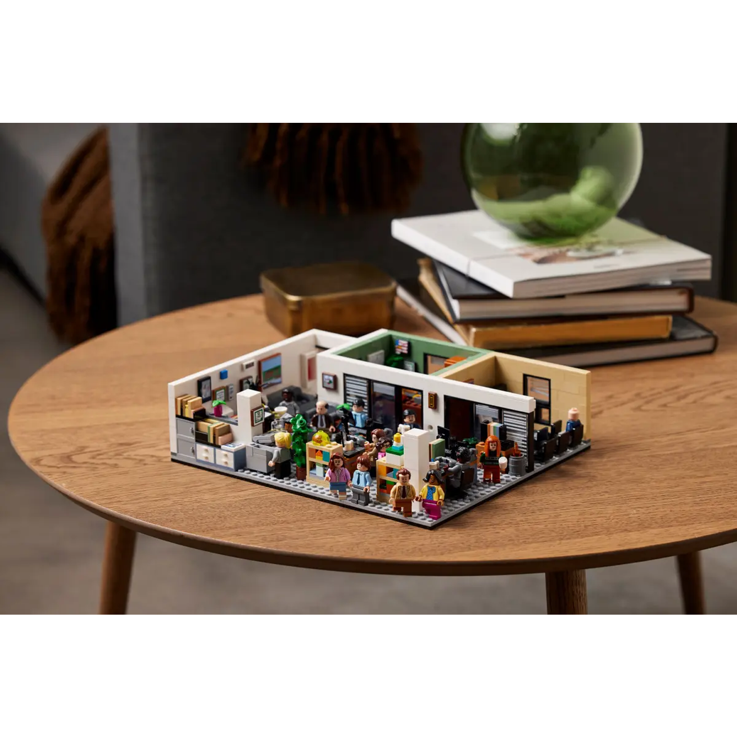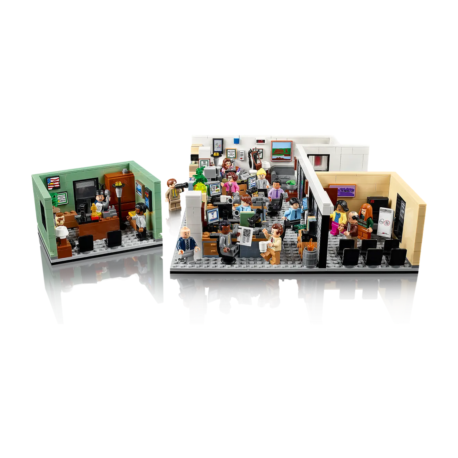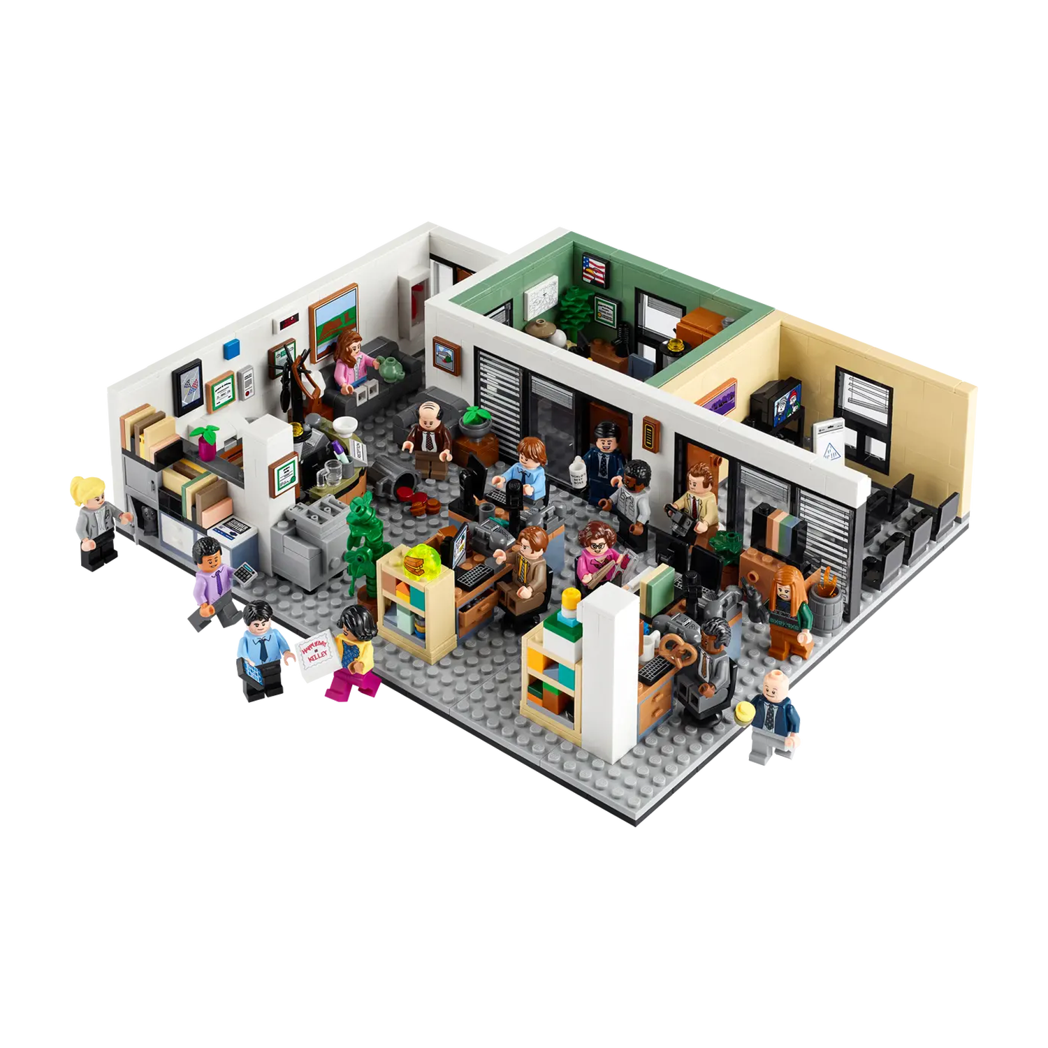 Inclusief 15 LEGO minifiguren: Michael Scott, Dwight Schrute, Jim Halpert, Pam Beesly, Ryan Howard, Angela Martin, Oscar Martinez, Kevin Malone, Stanley Hudson, Kelly Kapoor, Phyllis Lapin Vance, Meredith Palmer, Creed Bratton, Toby Flenderson en Darryl Philbin, plus een LEGO figuur van Angela's kat Garbage. Er zijn ook veel accessoires die verwijzen naar hilarische momenten, waaronder een nietmachine in gelatine, het Gouden Ticket, een Dundie-trofee en een 'World's Best Boss' mok.