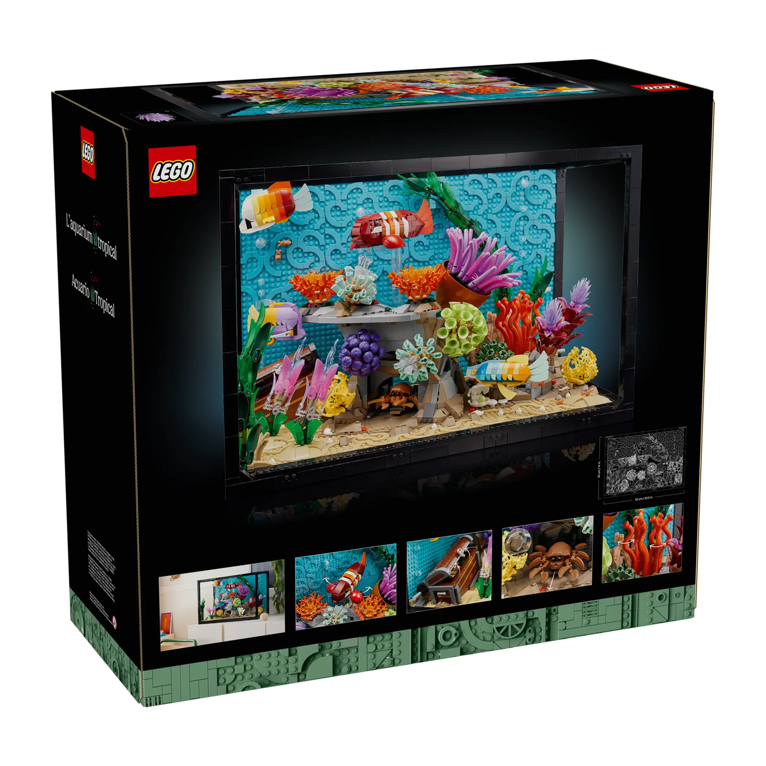 - Afmetingen – het aquarium in deze 4154-delige LEGO® bouwset is ca. 36 cm hoog, 52 cm breed en 28 cm diep