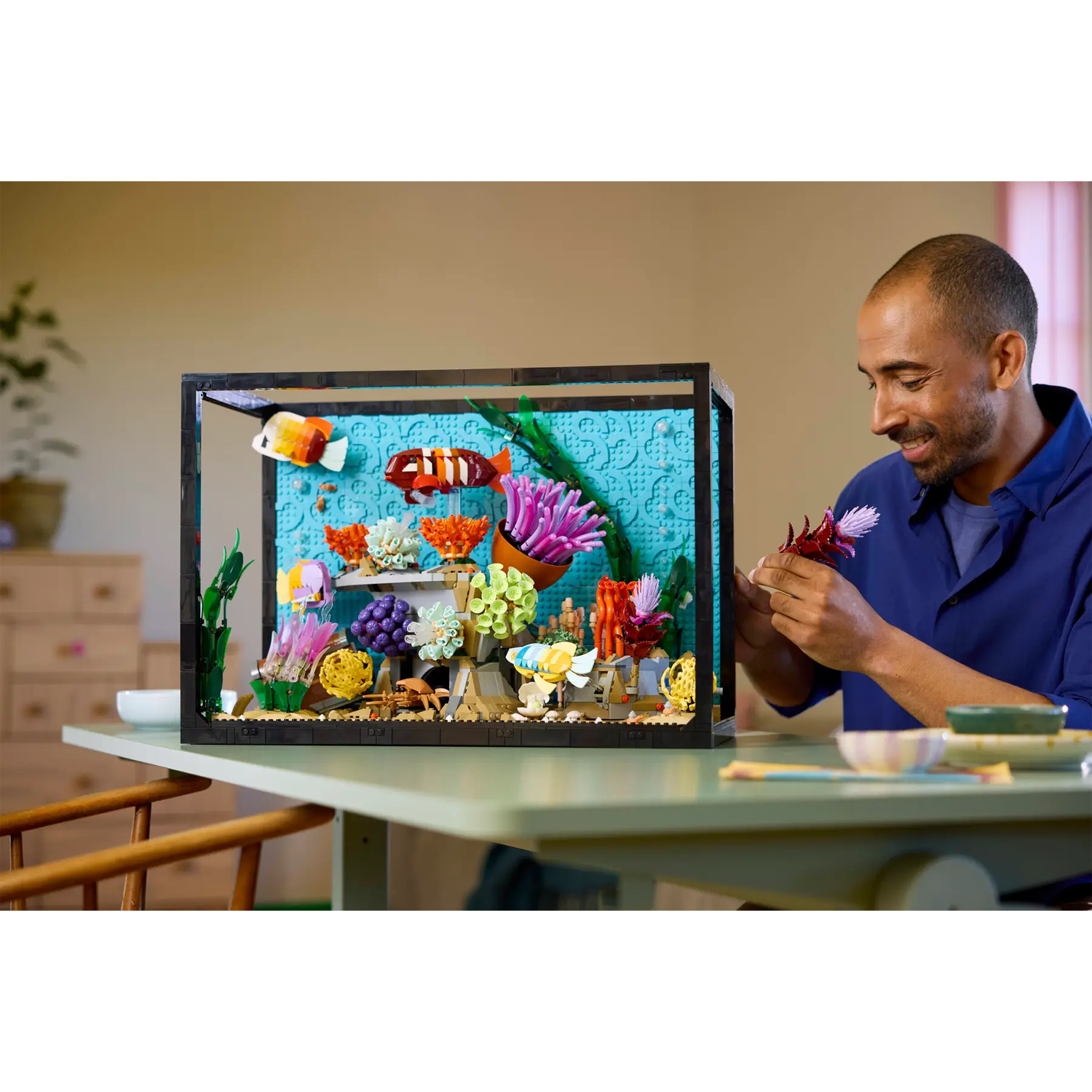 - Decoratieve aquariumset – neem wat tijd voor jezelf of verwen een dierbare met deze LEGO® Icons Tropisch aquarium set voor volwassenen