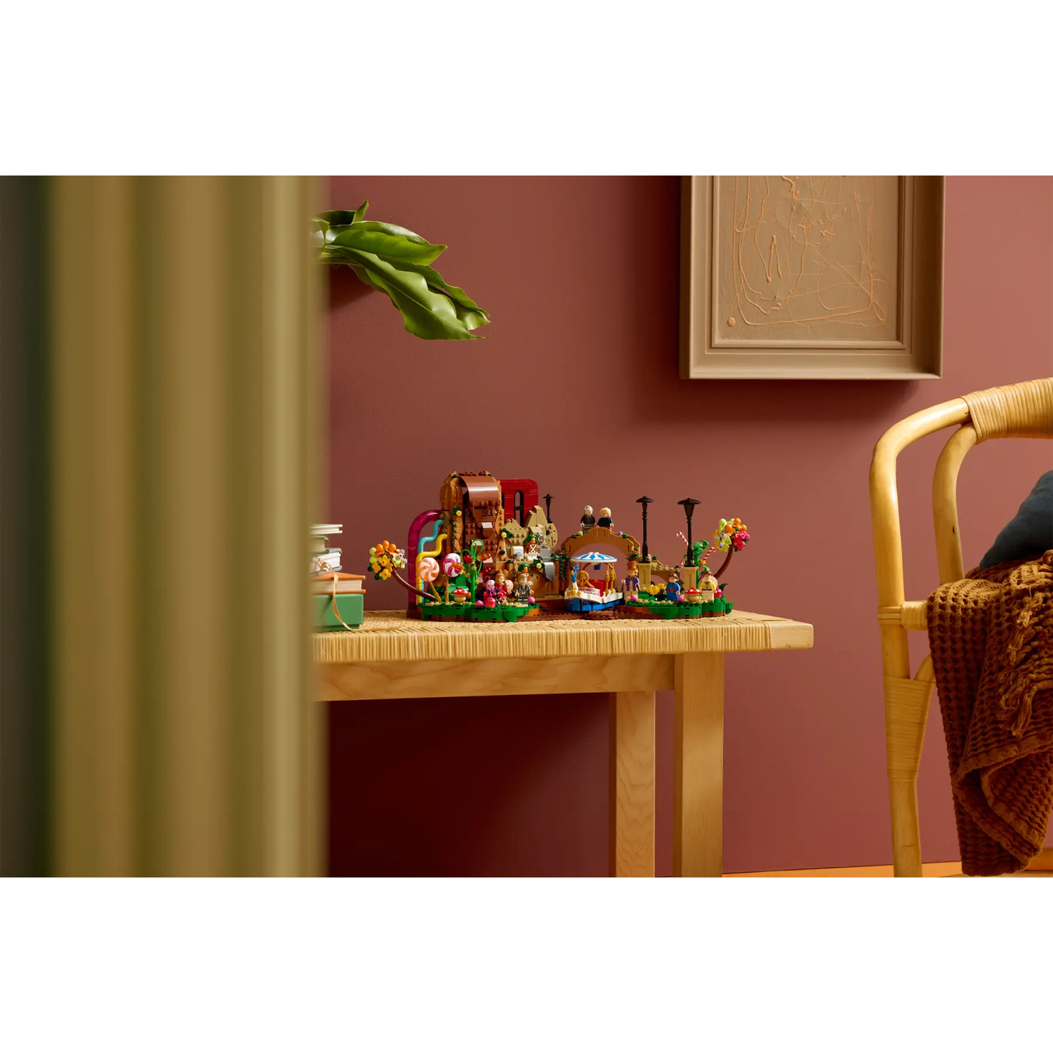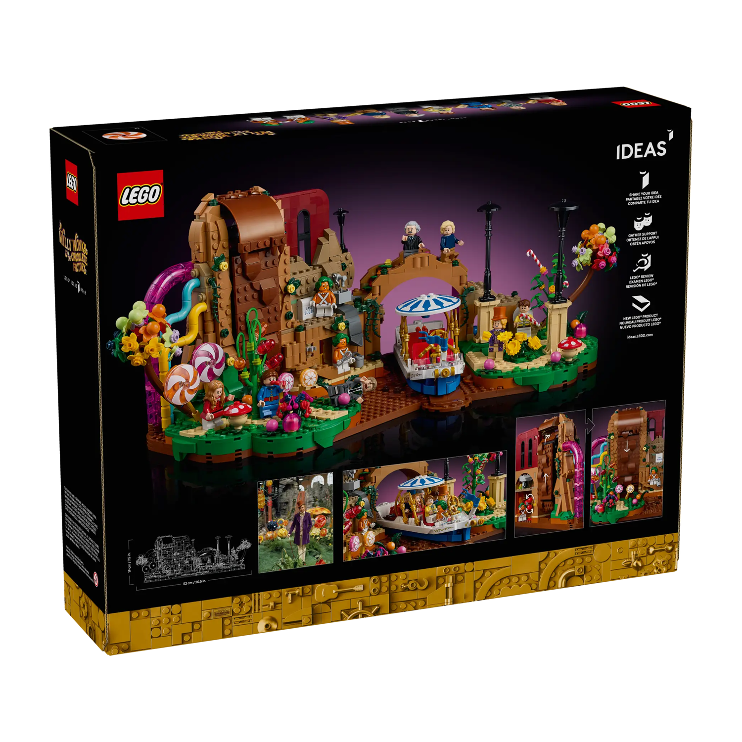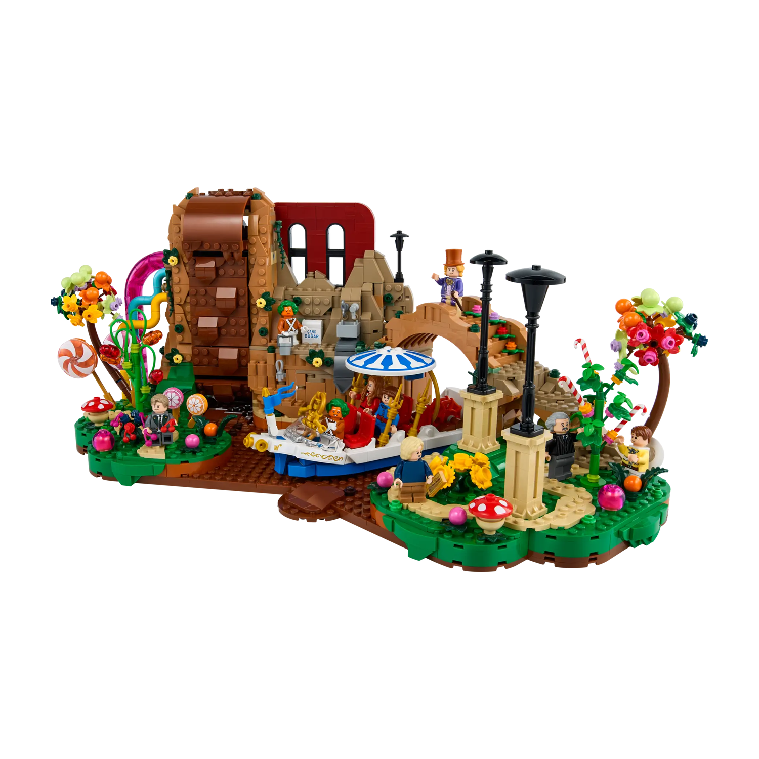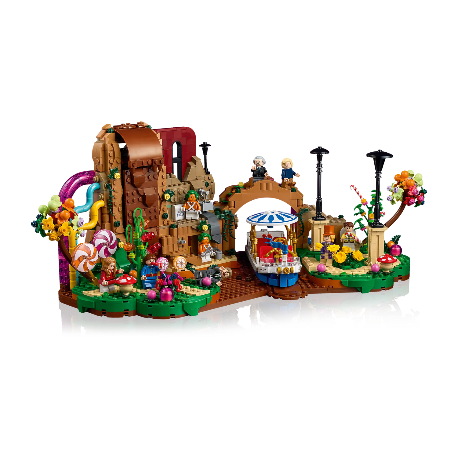 - Authentieke LEGO® details – inclusief de chocoladewaterval met kleurrijke pijpen, Wonkatania boot, werkruimte voor de Oempa Loempa's, Willy Wonka's kantoor met een geheime deur, snoepplanten en meer